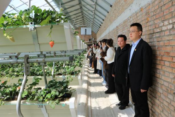 从陵园到田野,从追思到践行,祭扫活动结束后,师生们转赴大汤山村草莓科技小院,开展校地共建现场教学活动。在控制中心,他们深入了解草莓的数智化管理模式;在温室大棚内,积极探究草莓的精细化培育方法。师生们深刻领悟习近平总书记对青年人“自找苦吃”的殷切嘱托,自觉践行“把课堂学习和乡村实践紧密结合起来”的要求,于科技助农、乡村振兴的一线,体悟实践育人的深刻内涵,持续推动校地资源双向赋能、优势互补、协同发展,助力校地共建走深走实。