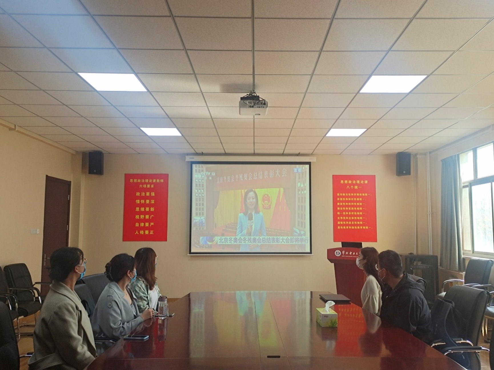 同学们首先共同观看了总结表彰大会,认真聆听习近平总书记的重要讲话。习近平总书记在讲话中充分肯定了北京冬奥会、冬残奥会取得的优异成绩,全面回顾了7年筹办备赛的艰辛历程,深刻阐述了北京冬奥精神。习近平总书记指出,北京冬奥会、冬残奥会广大参与者珍惜伟大时代赋予的机遇,在冬奥申办、筹办、举办的过程中,共同创造了胸怀大局、自信开放、迎难而上、追求卓越、共创未来的北京冬奥精神。