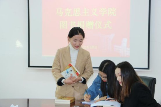 然后,同学们依次进行签名赠书,学术部成员将同学们带来的捐赠图书进行分类登记,“好书伴成长”活动捐书仪式至此圆满结束。