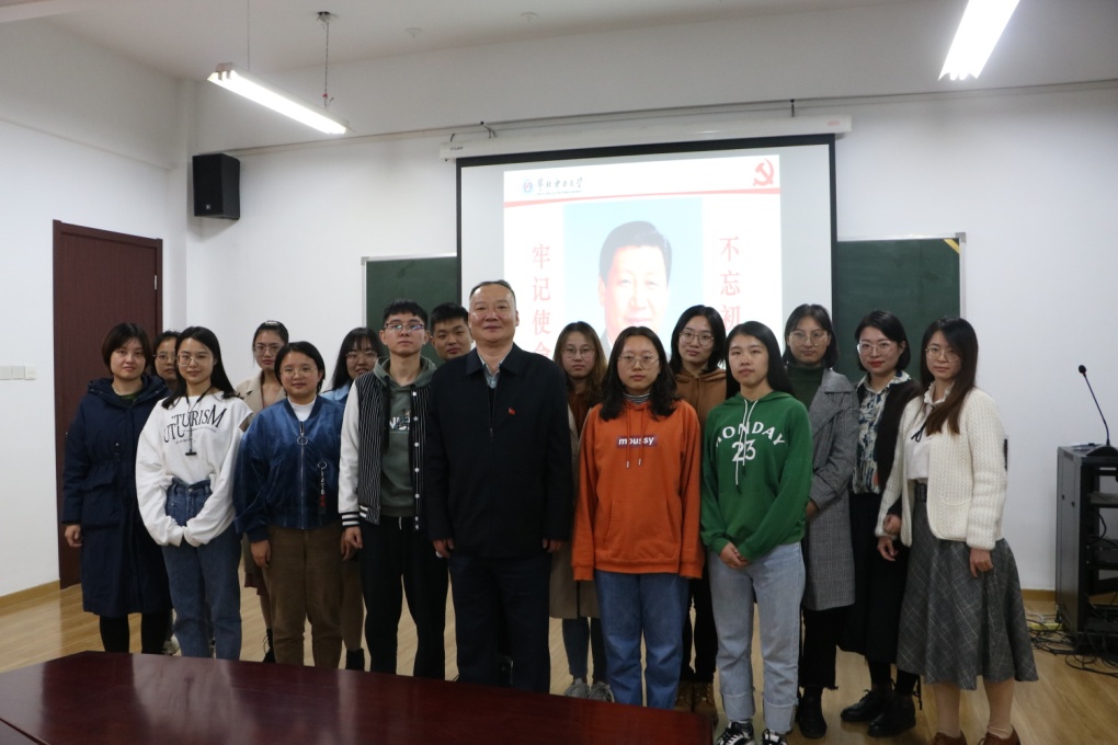 首先蔡书记向大家介绍了此次党课的主要内容共分为六大部分,接着他便对这些内容逐一展开叙述。他讲述的第一部分是 “不忘初心 牢记使命”的提出及其传统文化的思想渊源;第二部分是共产党人的初心与使命的本质内涵和发展历程;第三部分是习近平总书记提出“不忘初心 牢记使命”的时代背景;第四部分是“不忘初心 牢记使命”的理论基础主要内容和重大意义;第五部分是习近平总书记深沉的人民情怀和强烈的历史担当;第六部分是关于“不忘初心 牢记使命”主题教育的开展。经过蔡书记深入浅出的讲述,在座的同学们都对“不忘初心 牢记使命”这个主题的历史渊源、时代背景、理论基础,党的初心与使命以及习近平总书记的情怀与担当有了更加深刻的了解和体会。