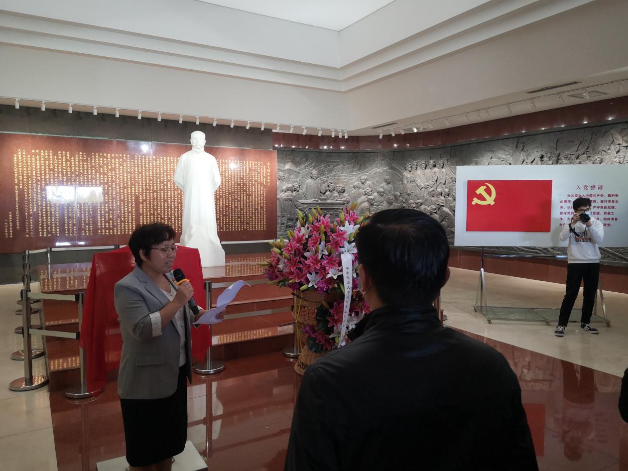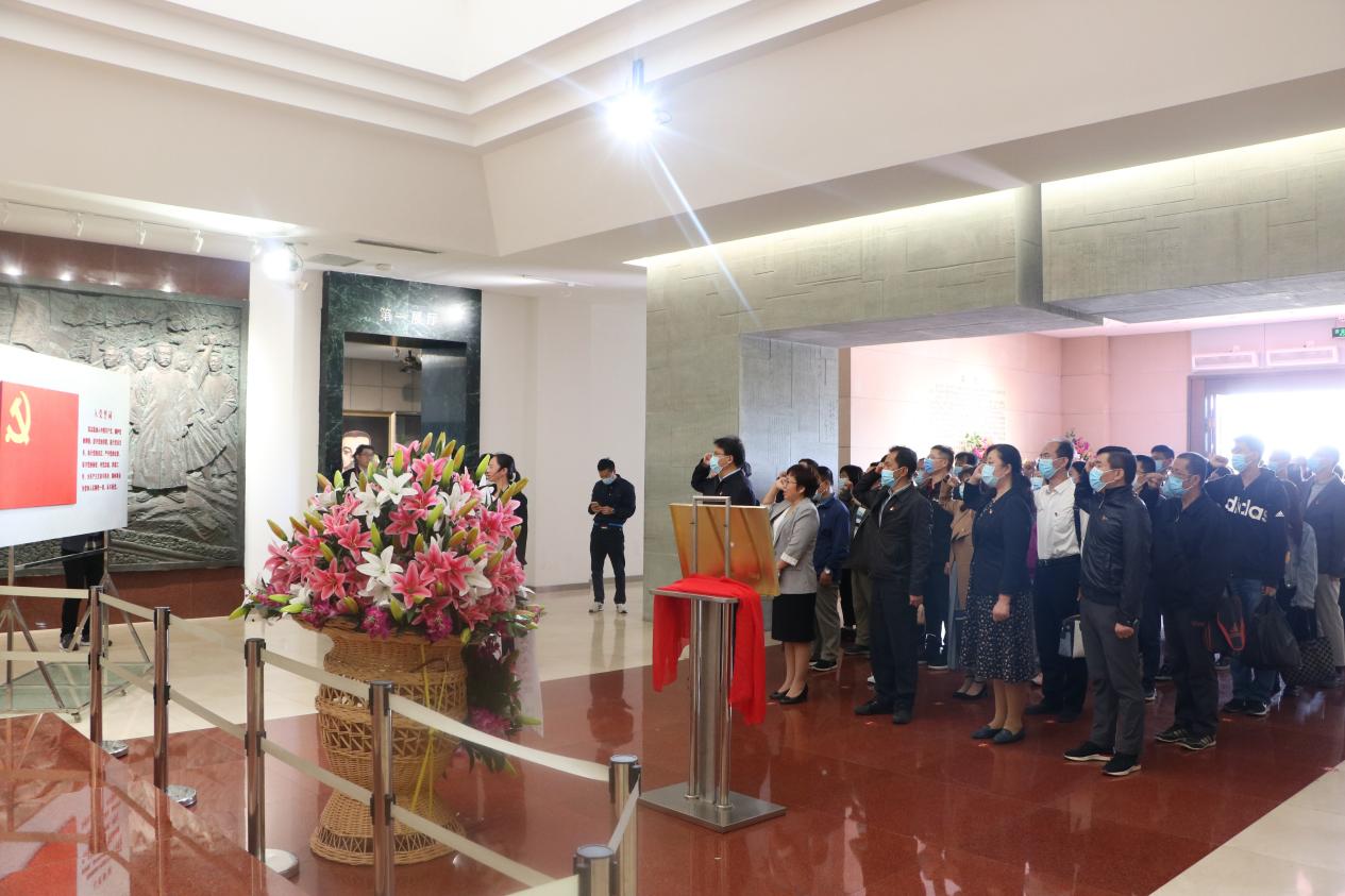 全体党员跟随李大钊纪念馆讲解员宣誓,重温入党誓词。揭牌仪式结束后,全体成员参观了李大钊生平事迹陈列展览馆,更进一步地深入认识李大钊先辈一生的奋斗历程。