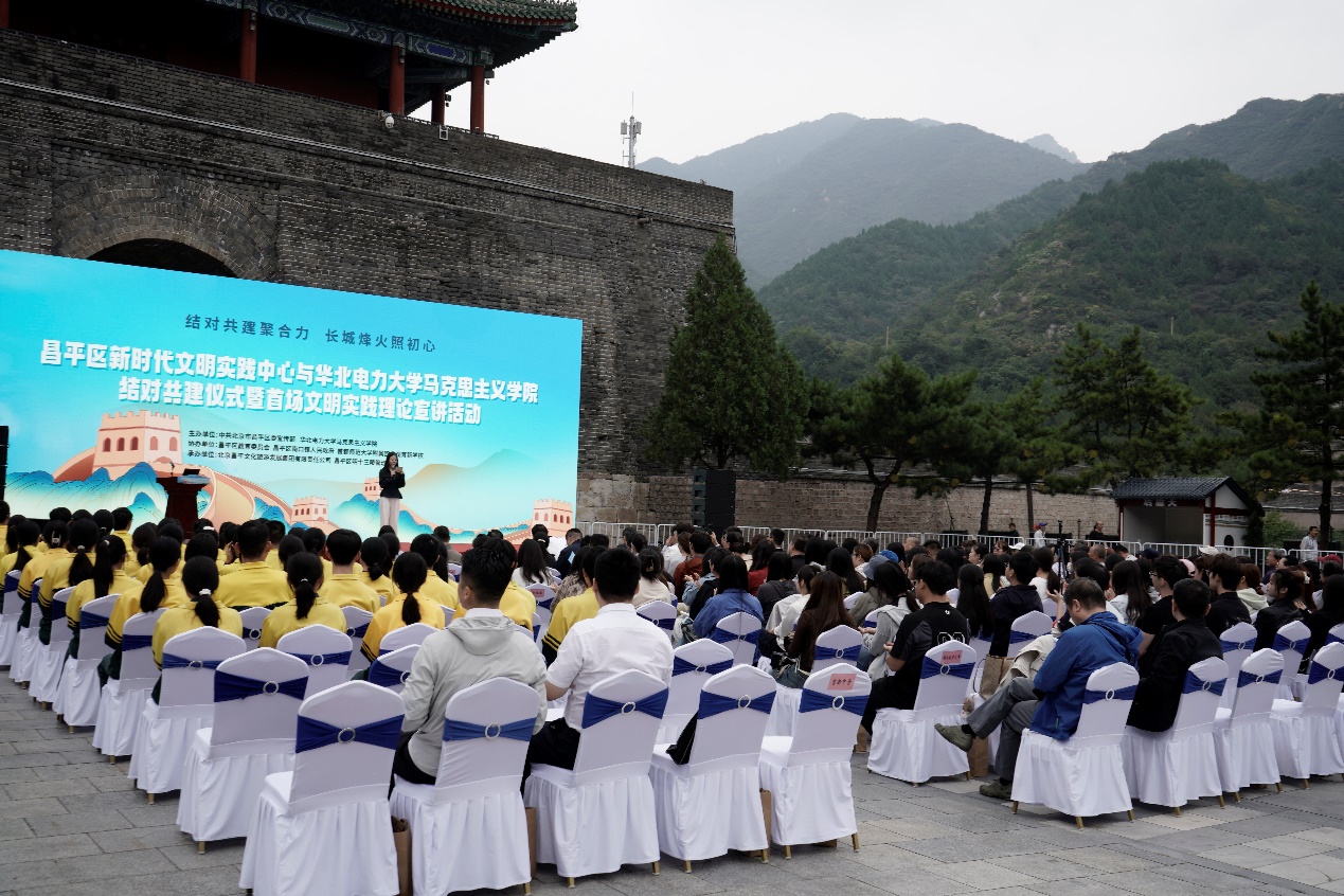 9月23日,学校betway88西汉姆联与昌平区新时代文明实践中心结对共建仪式暨首场文明实践理论宣讲活动在居庸关长城成功举办。北京市委宣传部领导,昌平区委常委、宣传部部长陈祥,bw必威西汉姆联官网党委副书记、纪委副书记何华,昌平区各镇街相关负责同志以及学校betway88西汉姆联师生代表200余人参加了活动。活动由马院员工代表刘婉琳主持。
