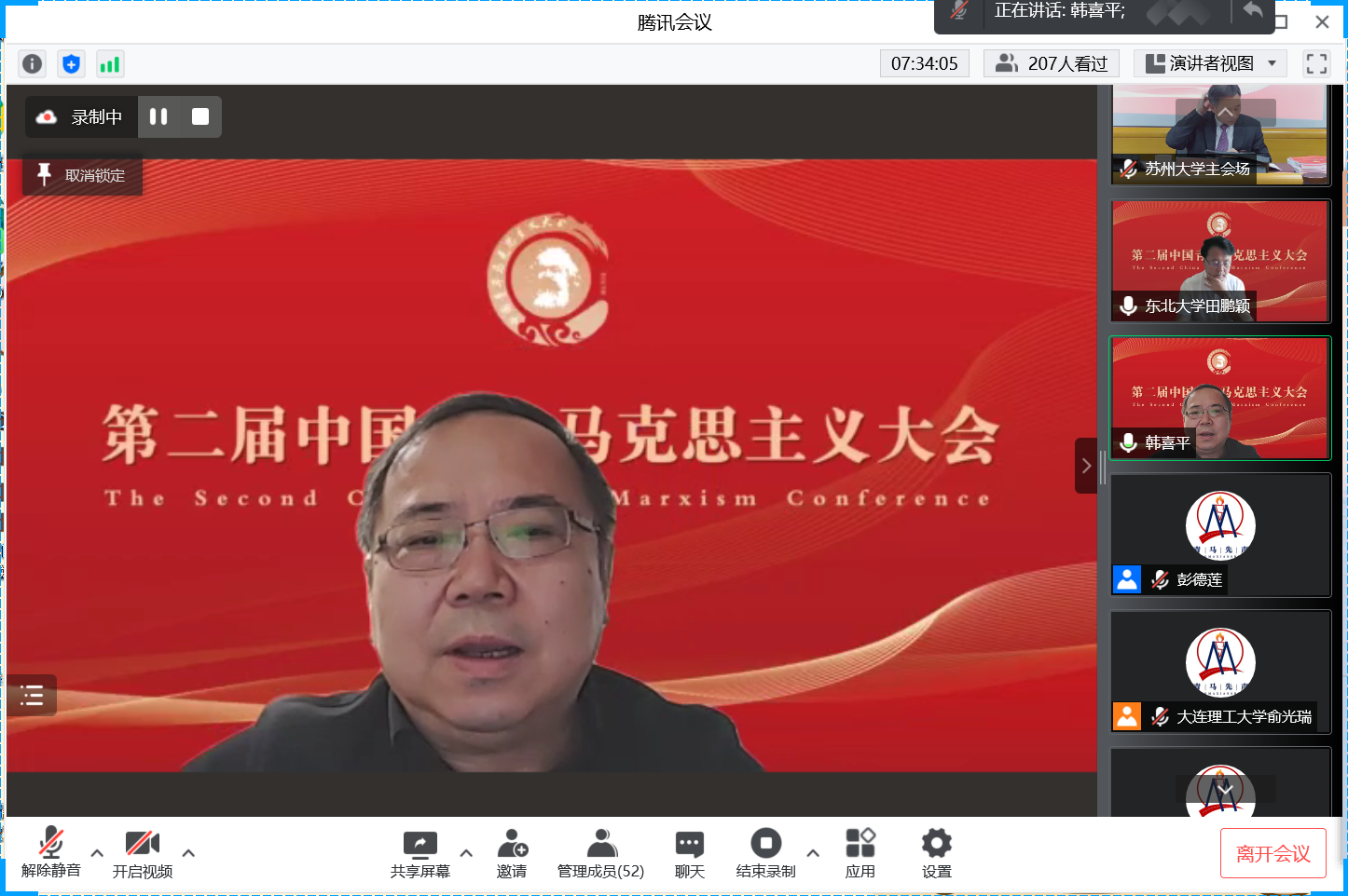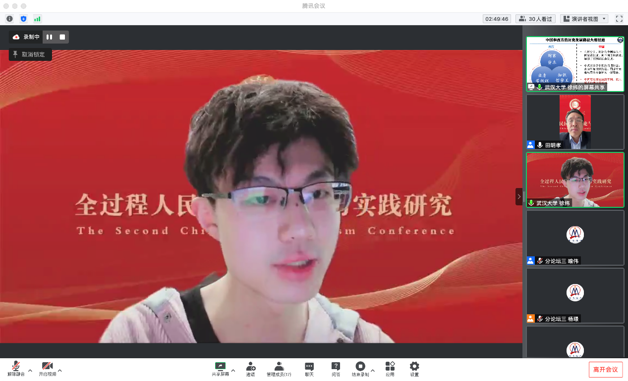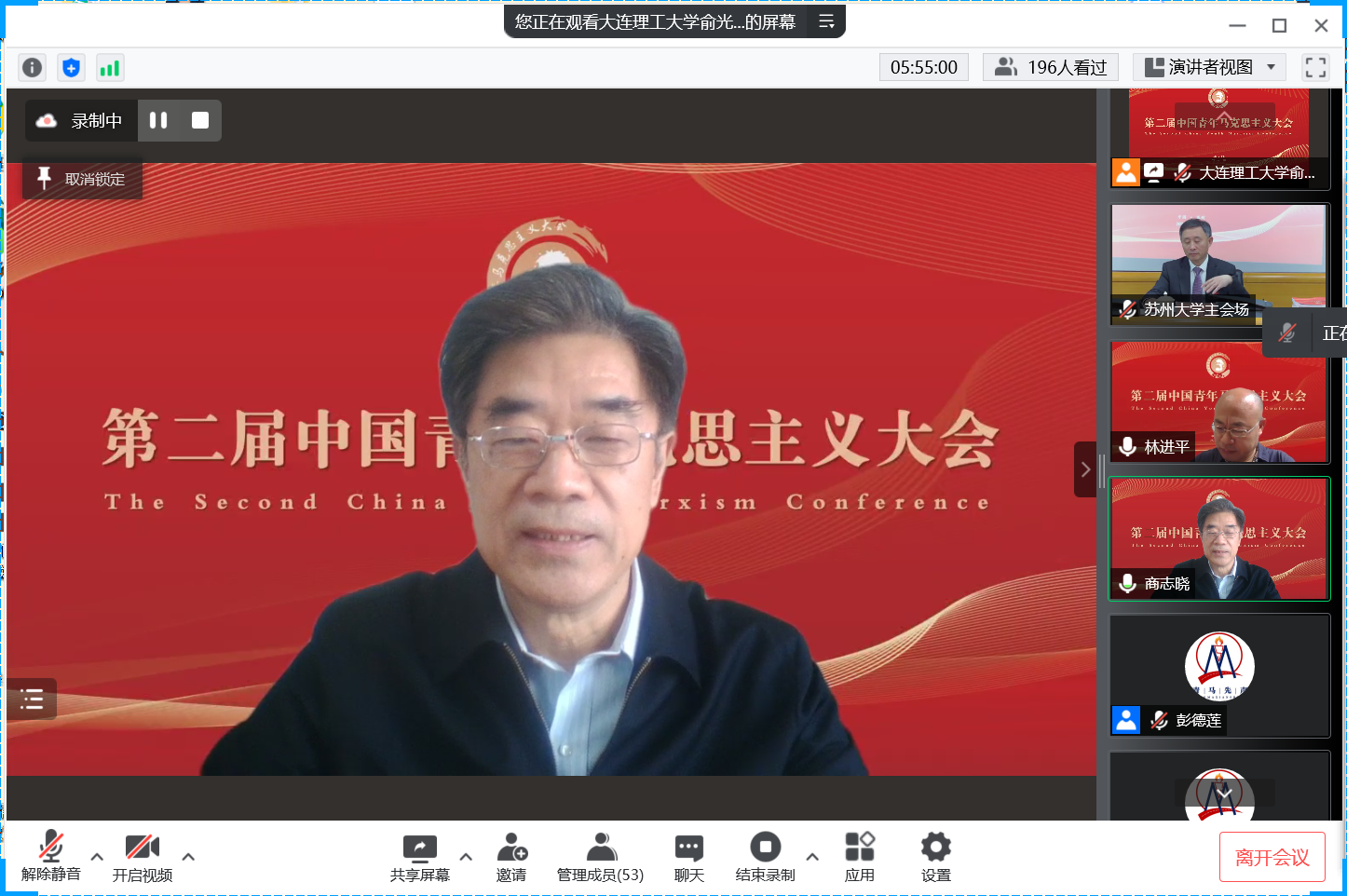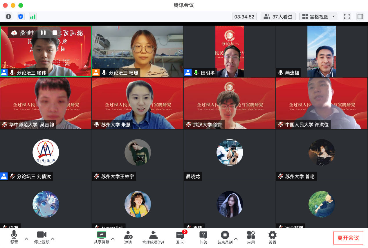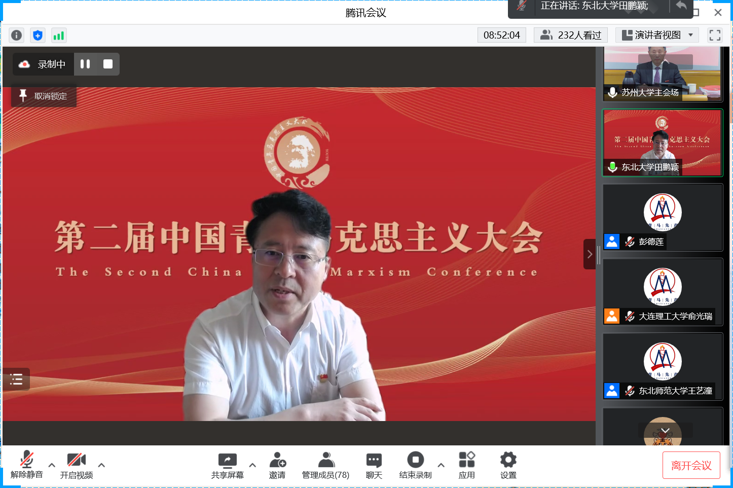 第二届“中国青年马克思主义大会”在苏州大学betway88西汉姆联等各主办、协办单位及“青马先声”等的筹办下取得圆满成功,来自全国高校、党政军企等科研院所的35位全国知名专家学者、200余位青年学者受邀参会学者围绕大会主题作主旨报告,共探学术前沿、共议学科发展。1个主会场、6场分论坛同时进行,线上直播累计55.8万人观看,实时在线超4.3万人次在线观看。大会有力推动了对马克思主义经典文献和21世纪马克思主义前沿问题的研究,加强了全国马克思主义理论学科老中青年学者之间的理论交流、促进了马克思主义学科青年发展成长,为国内马克思主义理论研究者带来了一场组织水平高、政治站位高、专家阵容大咖云集、学术含量高、组织衔接紧凑的饕餮学术盛宴,赢得了受邀专家学者和线上听众的广泛好评。田鹏颖教授认为“第一届、第二届中国青年马克思主义大会名家荟萃、少长咸集、精英辈出、青年主打,展现了我们青年马克思主义大会的宗旨,充分展现了中国青年马克思主义大会理论研究高端、学术思想高端、务实学风高端的特点”。他表示,作为第三届中国青年马克思主义大会的承办方,东北大学betway88西汉姆联将同山东师范大学betway88西汉姆联、苏州大学betway88西汉姆联等共同努力,把会议越办越好。