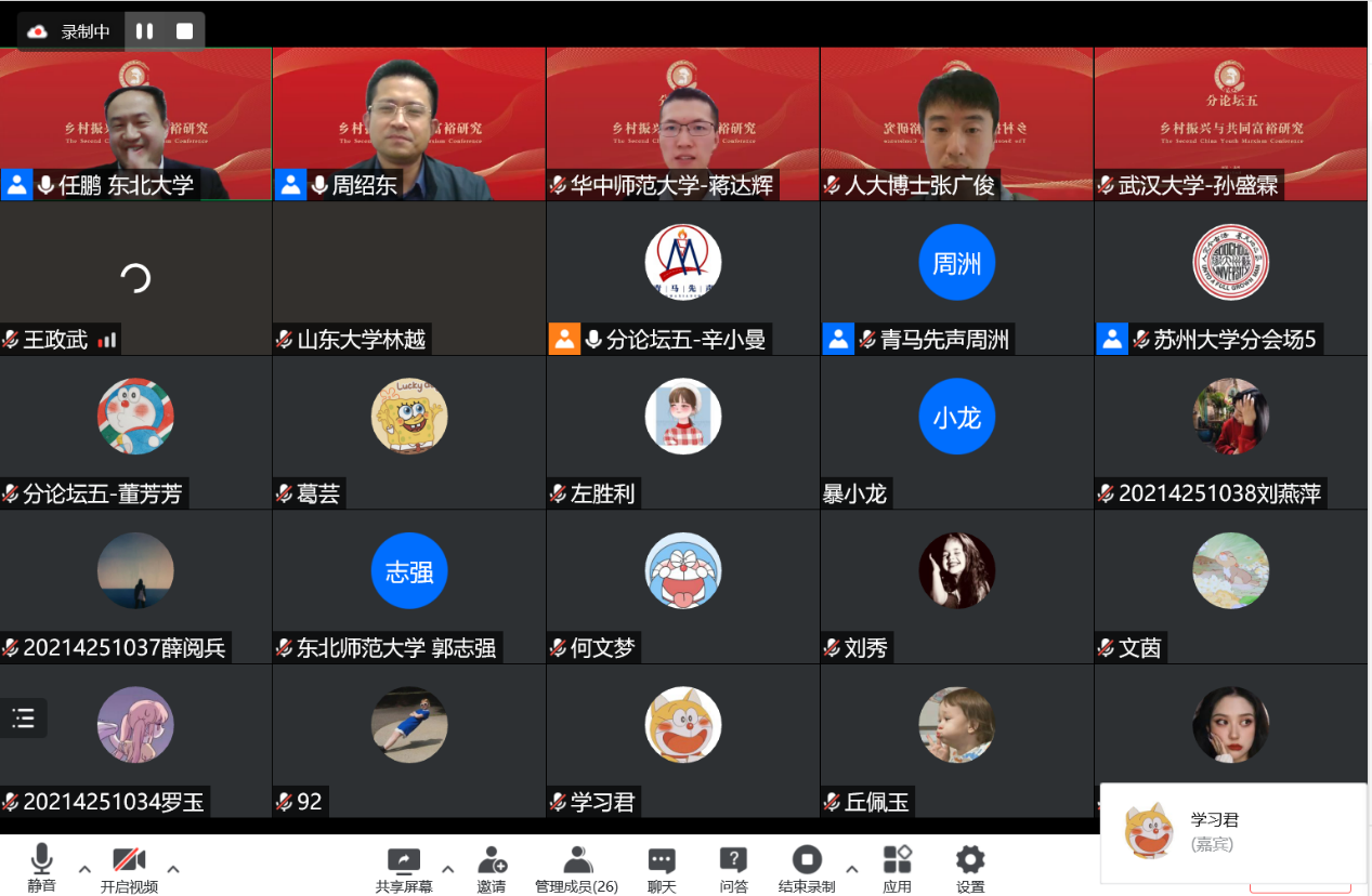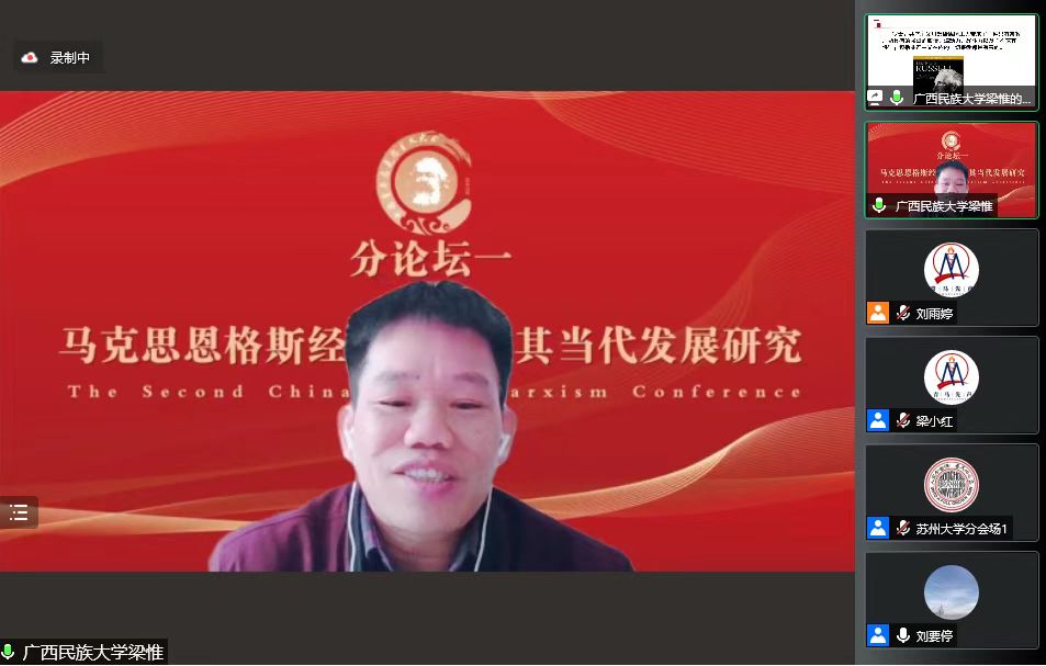“中国青年马克思主义大会”(以下简称“大会”)是由山东师范大学betway88西汉姆联、苏州大学betway88西汉姆联、东北大学betway88西汉姆联、华东理工大学betway88西汉姆联、内蒙古大学betway88西汉姆联、betway88西汉姆联、广西人民出版社、青马先声联合主办,《山东师范大学学报(社会科学版)》《山东社会科学》《海派经济学》《新疆师范大学学报(哲学社会科学版)》《浙江学刊》《江苏社会科学》《东南学术》《广西社会科学》《政治经济学研究》《经济与社会发展》《政治经济学季刊》《经济思想史研究》等期刊协办,围绕马克思主义理论学科前沿问题,以学术报告为主要内容,以线上和线下结合为主要形式的高端学术交流盛会。