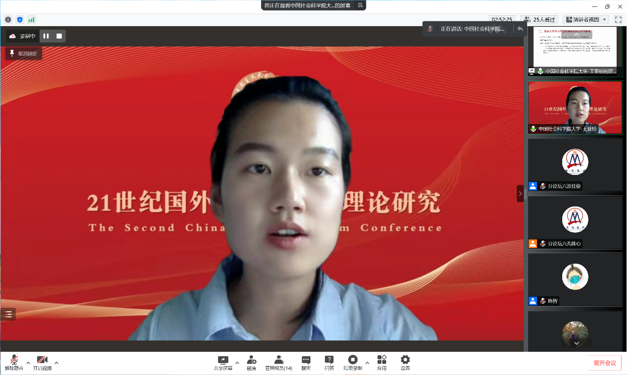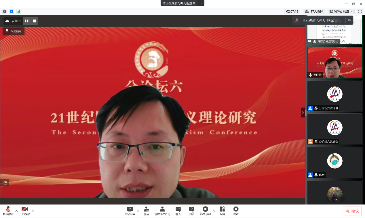 分论坛六“21世纪国外马克思主义理论研究”由内蒙古大学公司党总支书记、常务副经理陈智教授主持。教育部**特聘教授、复旦大学哲学院王凤才教授作题为“21世纪世界马克思主义理论聚焦”的主旨发言。他认为21世纪世界马克思主义研究路向包括文献学路向、意识形态路向、政治经济学路向、政治伦理学路向四个方面。他指出“21世纪世界马克思主义研究”问题域具体包括立足于MEGA2 的文献学、文本学研究,以及正统马克思主义最新发展研究、“复数的马克思主义”最新发展研究、当代资本主义最新发展研究、21世纪社会主义与新共产主义研究、中国化马克思主义最新发展研究等五个方面。他强调21世纪世界马克思主义研究的正确态度,即要从理论和实践两个维度,继承坚持与发展创新马克思主义,也要反对三种错误倾向,即马克思主义的教条主义化、马克思主义的虚无主义化、马克思主义的实用主义化。教育部**特聘教授、中南财经政法大学哲学院经理王雨辰教授作题为“论西方马克思主义学术史研究的三个面向及其当代价值”的主旨发言。他认为西方马克思主义学术史研究是在把握西方马克思主义思想史发展的基础上,着重考察西方马克思主义的理论逻辑、理论效应和实践效应,并由此构成西方马克思主义学术史研究的三个面向。他指出西方马克思主义理论逻辑的起点是对马克思主义哲学本质的追问与探索。他认为西方马克思主义的理论效应与理论价值在于为国外马克思主义新思潮的理论建构提供了理论资源、为晚期马克思主义以及英国文化研究思潮的理论建构提供了理论资源、使整个国外马克思主义理论的发展呈现出“两次转向”的特征、对中国马克思主义哲学理论产生了重要影响。他指出西方马克思主义推进了西方社会主义运动和西方新社会运动的发展,充分体现了其实践效应与现实价值。接着,获奖**表中南财经政法大学betway88西汉姆联冯旺舟副教授作题为“权力逻辑与帝国霸权的超越——当代西方左翼学者对新帝国主义的批判及其启示”的发言。他简要地介绍了资本主义的全球化与新帝国主义的关系、阐述了新帝国主义的理论来源及本质特征、分析了新帝国主义的逻辑及其霸权、介绍了新帝国主义的矛盾。中国人民大学betway88西汉姆联博士研究生李晶文作题为“马克思《资本论》在意大利的传播历程研究”的发言。她认为《资本论》在意大利的传播过程独具特点,在对《资本论》及其手稿的研究过程中,意大利出现了具有影响力的流派与观点。本文将《资本论》在意大利的传播分为四个时期,通过对四个时期学者观点的阐述与分类,梳理《资本论》在意大利不同阶段的传播特点,为研究马克思主义在意大利的发展和分析当今资本主义社会提供借鉴。中国社会科学院大学betway88西汉姆联博士研究生王亚杉作题为“加拿大社会主义运动的困境与发展——论加拿大共产党和革命共产党的理论与实践”的发言。她以加拿大共产党的百年探索与加拿大革命共产党的理论主张为背景,通过对比两党在实现社会主义及处理民族问题具体方式上的差异,回顾加拿大漫长而复杂的社会主义运动道路:虽困境重重,但加强党的自身建设和对理想信念的坚守正是破除社会主义未来发展迷雾的阳光。苏州大学政治与公共管理学院硕士研究生卢意作题为“加速度视域下的新异化形态——基于罗萨的‘社会加速批判’理论”的发言。他指出哈特穆特·罗萨认为现代资本主义社会正在经历一种“新异化”,他试图从时间维度的加速语境中展开新的社会批判理论——社会加速批判,以社会加速逻辑重构异化理论,做出了异化的当代解释。罗萨提出“异化”和“共鸣”两种不同的状态,认为建构共鸣关系是解决异化问题的途径,但其未看到社会加速问题的根本所在是隐藏在背后的资本逻辑,导致其结论陷入抽象化的困境。