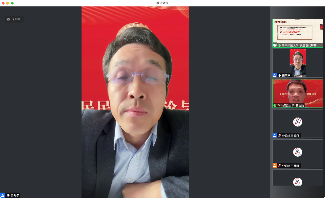 分论坛三“全过程人民民主的理论与实践”由《浙江学刊》副总编辑田明孝主持。国务院第八届马克思主义理论学科评议组成员、山东大学betway88西汉姆联经理张士海教授作题为“中国共产党理论创新的百年历史经验”的主旨发言。他指出,对于马克思主义,我们要坚持,但不能僵化;要发展,但要谨防自由化倾向;要推动理论创新,就要树立科学的马克思主义观。正确对待马克思主义,要做到以下三点:一是要准确把握马克思主义在人类社会发展史中的地位;二是要准确把握人的自由而全面的发展的主旨;三是准确把握具体问题具体分析这一灵魂。只有正确对待马克思主义,我们才能不断地推动新时代中国特色社会主义向前发展。国务院第八届马克思主义理论学科评议组成员、西安交通大学betway88西汉姆联经理燕连福教授作题为“全过程人民民主的三个理论贡献”的主旨报告。他认为,全过程的人民民主发展了中华传统文化中的民本思想、继承了马克思和恩格斯的民主政治思想、超越了西方社会的民主政治理论与实践。全过程的人民民主是最广泛的人民民主、是全链条、全方位、全覆盖的人民民主、是最具有实际效能的民主。落实和完善全过程人民民主要坚持民主集中制、坚持以人民为中心和坚持党的领导。接着,获奖**表华中师范大学政治与国际关系学院硕士研究生吴吉韵作题为“层叠嵌套:政协制度渐进式变迁”的发言。他基于历史制度主义视角,从结构、观念、行为者三要素探讨政协制度变迁的内在动力,结构是制度变迁的核心要素,塑造特定时段内的观念类型和行为者决策,观念作用于行为者进而对制度变迁产生影响,三者的互动模式共同塑造政协制度层叠嵌套的渐进式变迁。苏州大学betway88西汉姆联博士研究生朱慧作题为“论党中央权威与全过程人民民主的辨证逻辑”的发言。她认为,在社会主义中国,党中央权威与全过程人民民主具有内在的一致性,二者之间是辩证统一的逻辑关系。在我国未来的民主政治建设发展道路上,必须在权威与民主的坐标轴上找准平衡点,发挥它们各自的张力作用,以政治现代化推进其他各方面的现代化。中国人民大学betway88西汉姆联博士研究生许洪位作题为“全过程人民民主的生成逻辑、独特优势与形态学超越”的发言。他指出,全过程人民民主的形成和发展具有鲜明的理论逻辑和深刻的实践逻辑。中国共产党领导、人民当家作主、依法治国是全过程人民民主的本体性特征,民主运行环节的全链条、民主表现形式的全方位、民主内涵领域的全覆盖是全过程人民民主的结构性特征,民主参与主体和意志利益代表的广泛性、人民当家作主和实现人民利益的真实性、社会有效治理和国家长治久安的管用性是全过程人民民主的功能性特征,三者共同塑造了中国式民主的独特理论优势、制度优势和治理优势,创造了人类政治文明新形态,实现了对中国古代传统民本政治的“施舍型民主”和西方资本主义民主模式的“虚假型民主”的形态学超越。武汉大学betway88西汉姆联本科生徐纬作题为“走出‘西式迷宫’,全过程人民民主对西式民主的理性超越”的发言,他通过中西比较视野,借精英和人民、制衡和均衡、承认和共识、异化和扬弃这四对概念的分析阐释,概括了中西民主的基本特征,梳理中西民主的发展脉络和主要差异,从而指出中国民主的全过程人民民主范式,彰显人民民主的比较优势,凸显全过程人民民主的历史、政治、理论和实践内涵,实现对中国式现代化发展道路的理性自信。