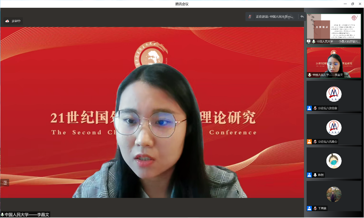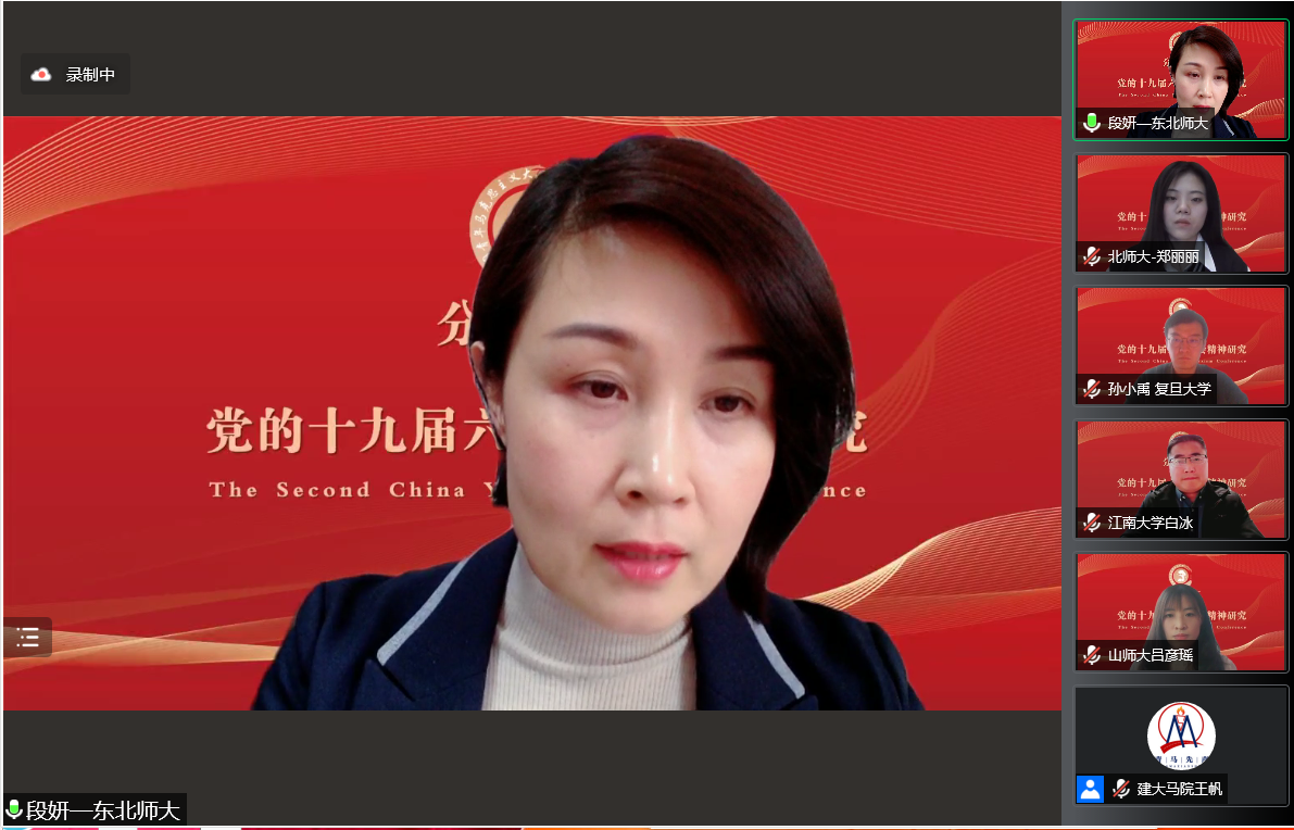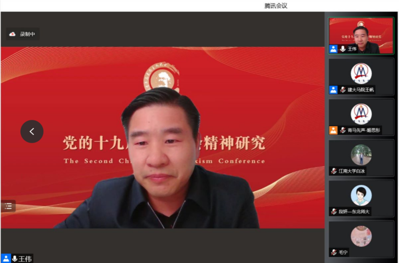 分论坛二“党的十九届六中全会精神研究”由betway88西汉姆联经理王伟教授主持。苏州大学马克思主义研究院经理朱炳元教授作题为“习近平新时代中国特色社会主义思想对马克思主义的原创性贡献”的主旨发言。他主要从交出了回答时代之问、人民之问的新答卷;谱写了马克思主义理论发展的新篇章;取得了举世瞩目的新成就;开辟了中国特色社会主义的新境界四个方面,阐述了党的十八大以来的原创性思想、变革性实践、突破性进展、标志性成果。他指出习近平新时代中国特色社会主义思想是当代中国马克思主义、21世纪马克思主义,是中华文化和中国精神的时代精华,实现了马克思主义中国化的飞跃。东北师范大学马克思主义学部副部长、教育部**学者段妍教授作题为“中国共产党坚持自我革命的历史进程”的主旨发言。她将党的自我革命划分为四个阶段,一是新民主主义革命时期,中国共产党进行自我革命的历史主动;二是社会主义革命和建设时期,中国党坚持自我革命的持续推进;三是改革开放和社会主义现代化建设新时期,中国共产党的自我革命的深入探索;四是中国特色社会主义新时代,党的自我革命的创新发展。接着,获奖**表北京师范大学betway88西汉姆联博士研究生郑丽丽作题为“从‘一个结合’到‘两个结合’的历史逻辑”的发言。她认为习近平总书记提出“马克思主义基本原理同中国具体实际相结合、同中华优秀传统文化相结合”的重大论断,是对马克思主义中国化内涵特质与发展规律的深化认识。从“一个结合”到“两个结合”有着积累和演进的历史过程,蕴含着马克思主义中国化百年历程的内在逻辑。“一个结合”是“两个结合”的前提基础,“两个结合”是“一个结合”的时代解读,两次结合共同致力于中华民族伟大复兴。在“两个结合”中推进马克思主义中国化,必须以认清把握中国发展具体实际为立足点,以传承发展中华优秀传统文化为切入点,以坚定不移走中国式现代化新道路为落脚点,在实践中不断开辟马克思主义中国化发展新境界。获奖**表江南大学betway88西汉姆联白冰副教授作题为“中国共产党历史自信的三重逻辑”的发言。他认为中国共产党人的历史自信是中国共产党人对党的百年奋斗历史成就、奋斗精神、历史经验和未来前景的自我确认与高度自信,源于中国共产党人对百年奋斗的伟大成就,对马克思主义指导思想的坚持与创新以及对人民立场始终如一的坚守与发展。因此,坚定历史自信是中国共产党团结带领全国各族人民继续前行,在新的赶考之路上继续交出优异答卷的关键所在。获奖**表复旦大学betway88西汉姆联博士研究生孙小禹作题为“标准与标志:关于中国共产党合适发展成熟的思考”的发言。他以“成熟”为基本线索,以“标准”和“标志”为切入点,梳理当前关于中国共产党成熟问题的主要观点,分析观点产生分歧的原因,厘清党成熟的相关概念和标准,思考中国共产党不同历史阶段发展成熟的标志。获奖**表山东师范大学betway88西汉姆联博士研究生吕彦瑶作题为“人类文明新形态的‘新’在哪里”的发言。她认为从精神把握人类文明是现代哲学反思的重要维度。马克思及以前的哲学家认为世界存在唯一的真理规定着人类历史和人类文明形态。由此,人类文明新形态走出后现代主义哲学的迷雾。跨越“卡夫丁峡谷”,超越资本逻辑,坚持“人民至上”,是人类文明新形态区别于西方文明的鲜明特点。坚持辩证法是彻底摆脱资本逻辑主导的形而上学之路、推进人类文明新形态的思想武器。