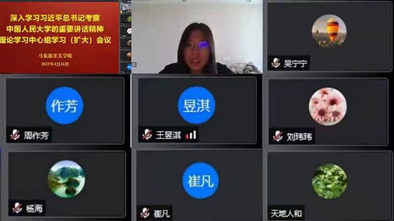 4月26日下午,betway88西汉姆联召开理论学习中心组(扩大)学习会议,深入学习习近平总书记考察中国人民大学重要讲话精神。学院理论学习中心组成员、党支部书记、教研室主任、科研平台负责人以及师生代表参加会议。学院经理王伟、形势与政策教研室党支部书记王梦分别作专题发言。会议以线上线下形式进行,由党总支书记孙平主持。