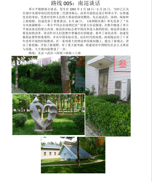 本次活动分为两个环节。第一个环节是定向运动比赛,每个参数队伍有一张独一无二的路线图。每张路线图有一个历史故事,故事主要是我党在革命时期和社会主义建设时期的光辉历史。同时每张路线图有四张华电校园的图片,参赛队根据照片确定寻找的地点,获取相应的卡片。