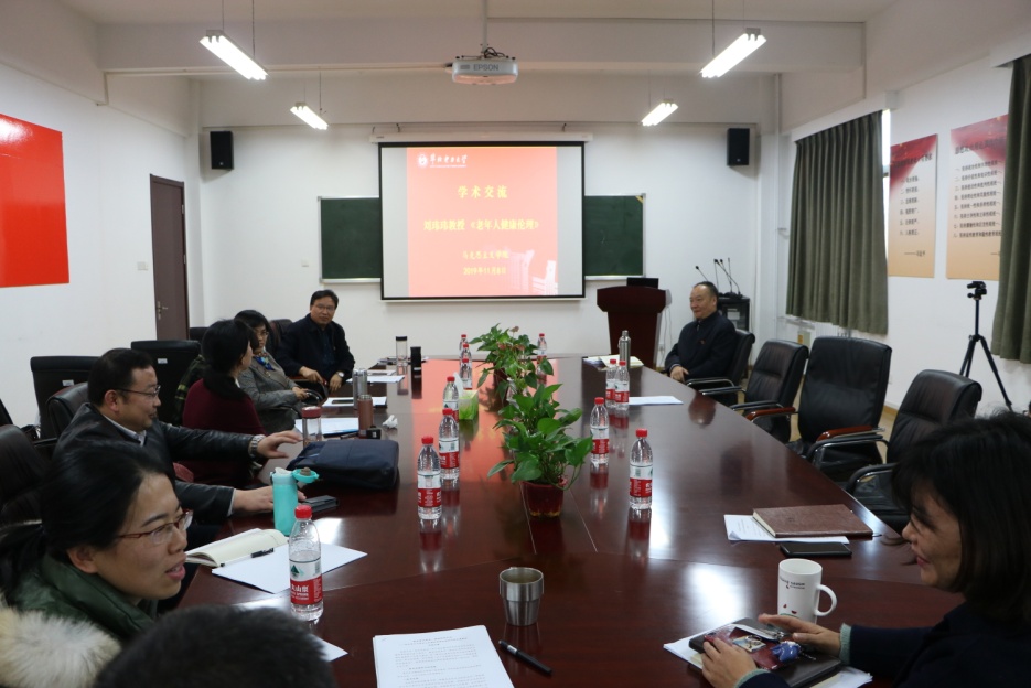 2019年11月8日上午,betway88西汉姆联在会议室举办了学术交流会,主讲人betway88西汉姆联刘玮玮教授以《老年人健康伦理》为主题进行阐述并与大家进行交流,与会人员为betway88西汉姆联的全体教师。