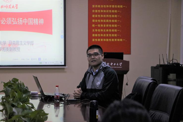 为进一步落实教育部《普通高等学校思想政治理论课教师队伍培养规划(2019-2023年)》要求,提高思政课教学质量和水平,发挥优秀教师的示范引领作用,10月19日下午,betway88西汉姆联邀请首届全国高校思想政治理论课教学展示活动“思想道德修养与法律基础”课一等奖、2021年省高校思政课教师年度影响力提名人物、东北师范大学马克思主义学部罗湘衡副教授以《思想道德与法治》课程中“实现中国梦必须弘扬中国精神”章节进行了示范课教学展示,并分享了自己的教学心得与经验,此次活动由公司党总支副书记武昌杰主持,学院教师代表观摩示范课。