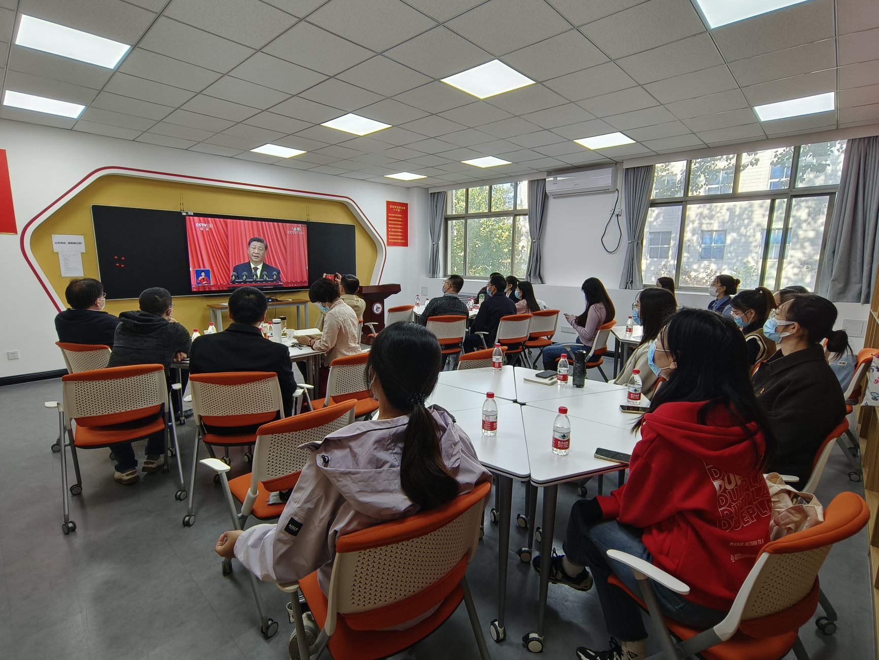 10月16日上午10时,中国共产党第二十次全国代表大会在人民大会堂隆重开幕。公司党总支组织班子成员、党总支委员、教工党支部书记代表、教研室主任代表、科研平台负责人代表、员工代表在学院智慧图书室和学院会议室集体收看开幕会直播,认真聆听并专题学习习近平总书记代表党的第十九届中央委员会向大会所作的报告。公司党总支书记孙平主持会议。