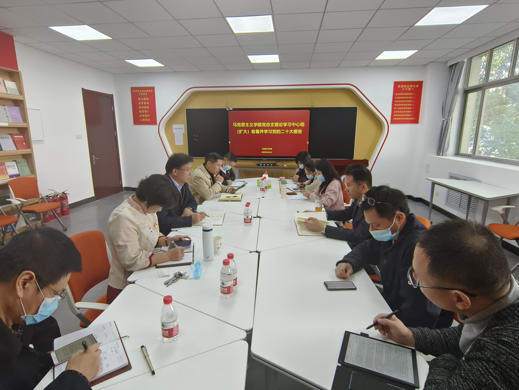 报告结束后,公司党总支紧接着召开理论学习中心组(扩大)会议,专题学习、讨论党的二十大报告。孙平领学并梳理了报告的总体结构及新的提法,报告明确了本次大会的主题,“十五个部分”以全面回顾过去五年的工作和新时代十年的伟大变革为逻辑起点,并就“加快构建新发展格局,着力推动高质量发展”,“实施科教兴国战略,强化现代化建设人才支撑”等方面提出了具体要求。孙平着重从以下几个方面发表了自己的学习体会:报告提出了“三个务必”,这是对毛泽东同志曾经在七届二中全会提出的“两个务必”的坚持与发展,也为我们进行许多具有新的历史特点的伟大斗争提供了重要的思想保障;孙平还就报告中提到的“十年来,我们经历了对党和人民事业具有重大现实意义和深远历史意义的三件大事”以及“新时代十年的伟大变革,在党史、新中国史、改革开放史、社会主义发展史、中华民族发展史上具有里程碑意义”等重要论断发表了自己的看法;孙平强调,我们党勇于推进理论创新和实践创新,习近平新时代中国特色社会主义思想深化了对共产党执政规律、社会主义建设规律、人类社会发展规律的认识,我们要深刻认识全面贯彻落实,并把党的二十大报告的精神实质及时融入到思政课教学与研究之中。