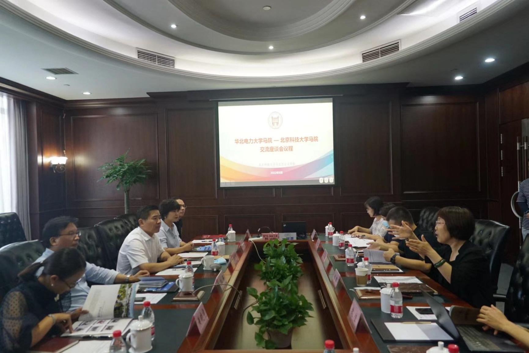 孙平介绍了来访目的,王伟介绍了公司马院发展现状和未来北京市重点建设betway88西汉姆联的发展思路。张颖致欢迎辞并简要介绍了学院概况。宋伟全面介绍了北科大马院在团队建设、理论研究、教师队伍等方面采取的创新措施,取得的相关成绩,并重点介绍了“三全育人强根基 创新探索树品牌”的实施情况,从坚持体系化设计、夯实制度化保障、加强系统化支撑和追求特色化发展等维度,形成团队建设和思政课教学创新高度耦合的发展经验。北科大马院段晓芳教授介绍了“形势与政策”课程采用线上线下立体化模式,依托数字马院协同平台和慕课,形成了“5+5”特色理论教学体系的建设经验。北科大马院魏佳副教授就思政课教学分享了三点具有可操作性的经验。